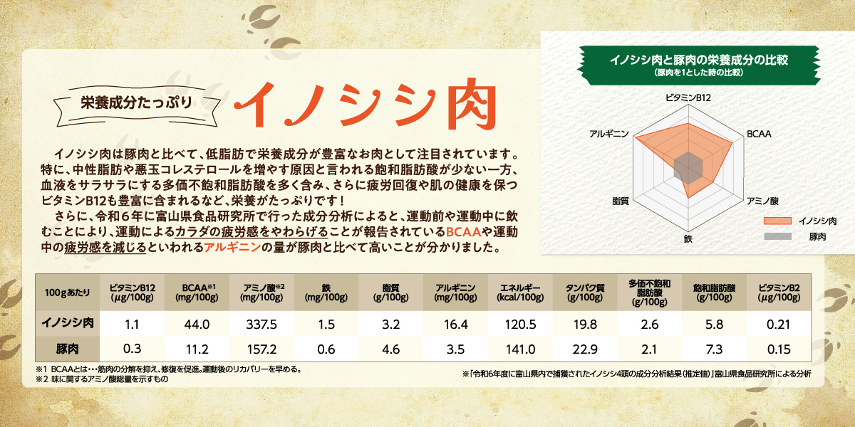 …富山県内で捕獲されたイノシシやシカ等を適正に食肉処理された野生鳥獣肉のこと